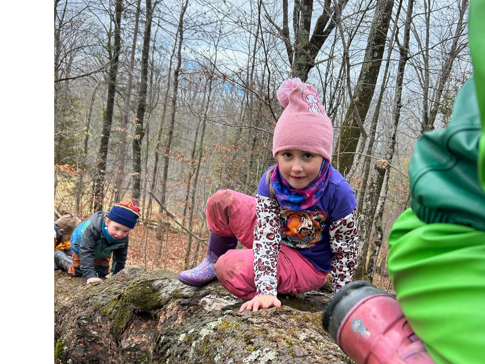Coyotes are introduced to the basics of safe tool use, begin building practical outdoor skills, and deepen their connection to nature through meaningful hands-on experiences. Whether they’re tracking wildlife signs, creating in the mud kitchen, or simply soaking up the magic of the forest, Coyotes flourish in this community rooted in curiosity, and kindness.